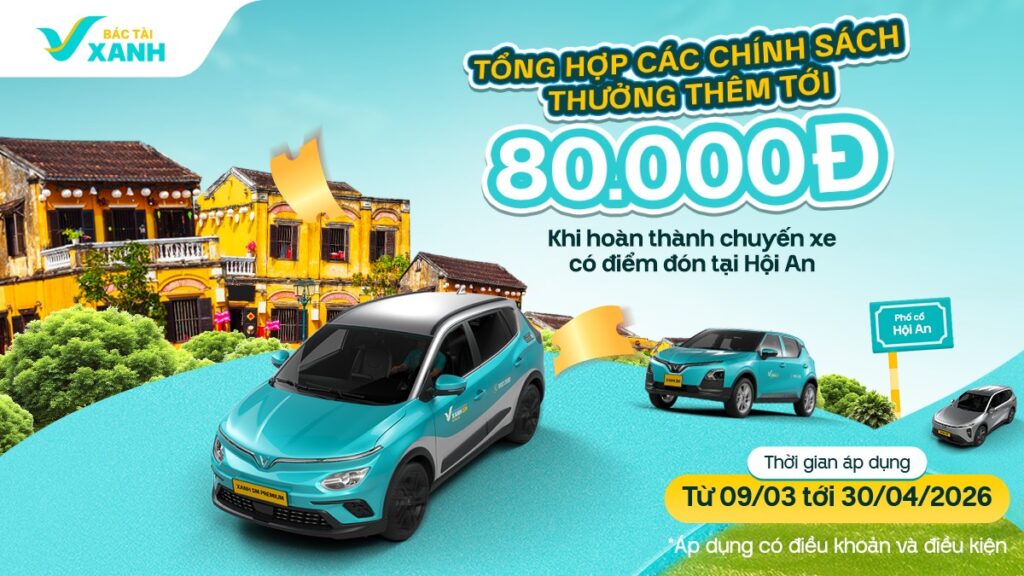 [Bác Tài Xanh Taxi] Tổng hợp các chính sách thưởng thêm tới 80.000đ khi hoàn thành chuyến xe có điểm đón tại Hội An