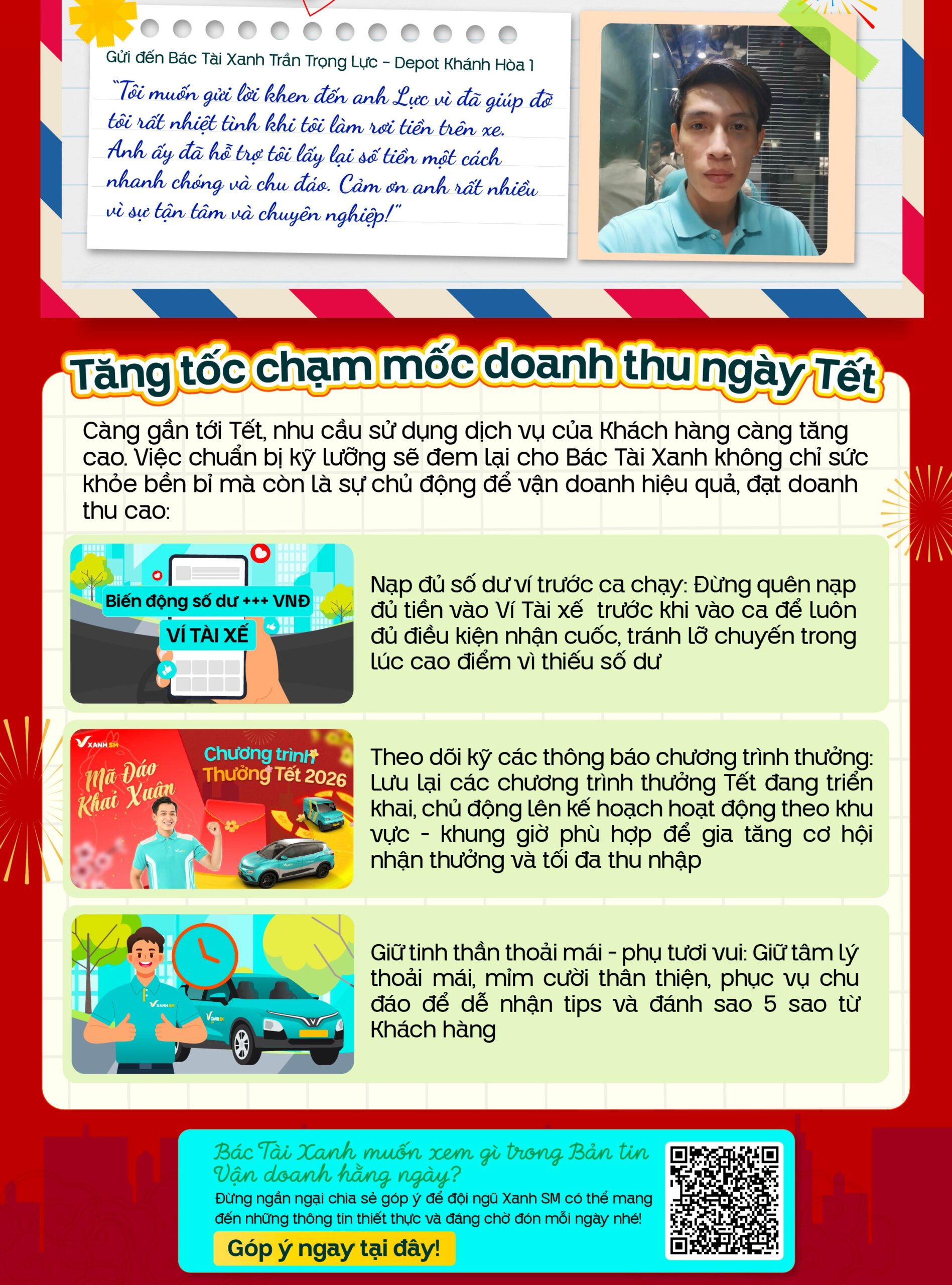 Và đừng quên, nếu Bác Tài Xanh có góp ý hay chia sẻ thêm mong muốn, hãy gửi lại cho đội ngũ Xanh SM để Bản tin mỗi ngày thêm thiết thực và đáng mong chờ hơn!