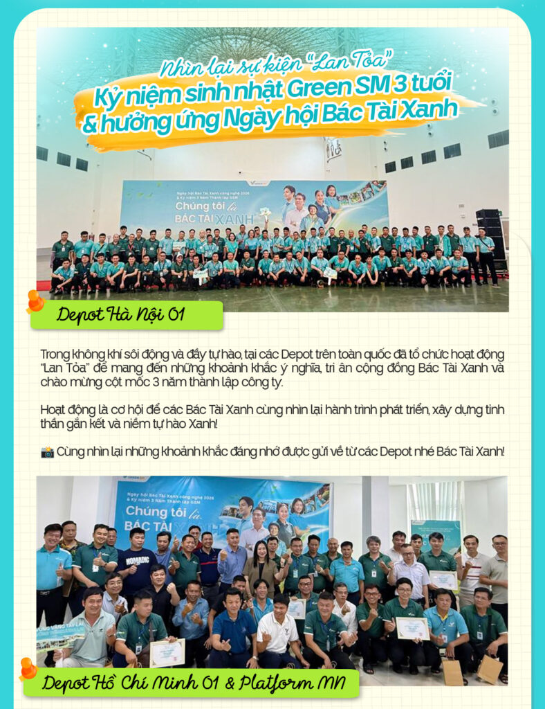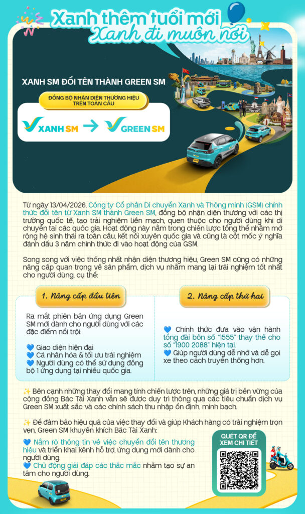 Đánh dấu cột mốc 3 năm hình thành và phát triển, Xanh SM chính thức chuyển mình với tên gọi và nhận diện thương hiệu mới – Green SM, mở ra chặng đường vươn tầm quốc tế đầy mạnh mẽ. Song hành với bước ngoặt này Chương trình “Hưởng ứng Ngày hội Bác Tài Xanh Công nghệ 2026” đã diễn trên toàn quốc mang đến những khoảnh khắc ý nghĩa, gắn kết cộng đồng Bác Tài Xanh và cùng nhau nhìn lại hành trình 3 năm đầy tự hào.