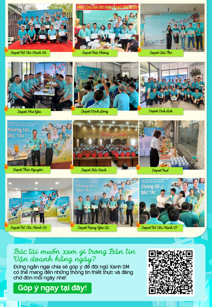 Và đừng quên, nếu Bác Tài Xanh có góp ý hay chia sẻ thêm mong muốn, hãy gửi lại cho đội ngũ Xanh SM để Bản tin mỗi ngày thêm thiết thực và đáng mong chờ hơn!