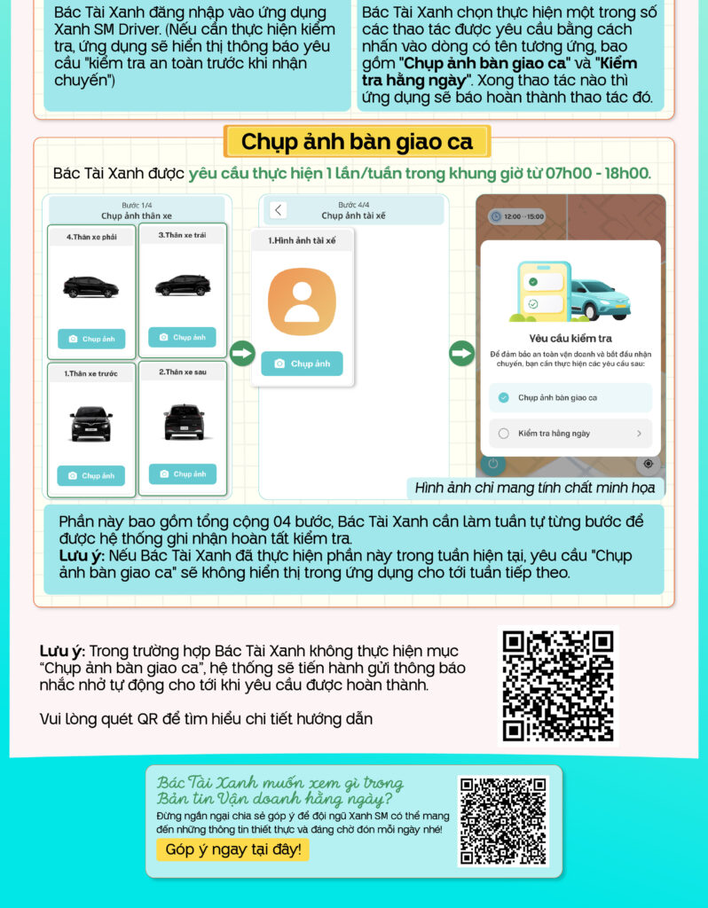 Và đừng quên, nếu Bác Tài Xanh có góp ý hay chia sẻ thêm mong muốn, hãy gửi lại cho đội ngũ Xanh SM để Bản tin mỗi ngày thêm thiết thực và đáng mong chờ hơn!