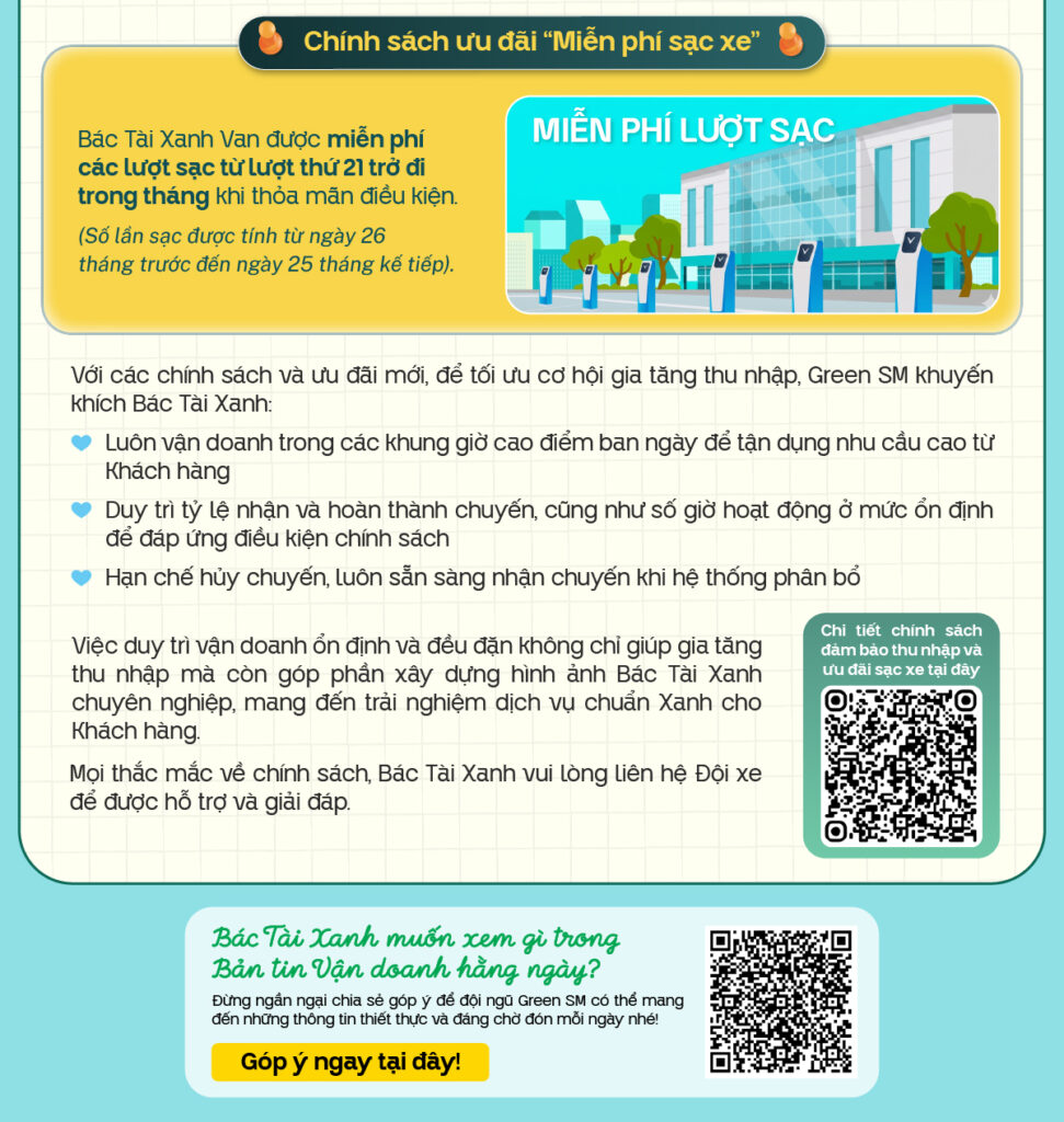 Và đừng quên, nếu Bác Tài Xanh có góp ý hay chia sẻ thêm mong muốn, hãy gửi lại cho đội ngũ Xanh SM để Bản tin mỗi ngày thêm thiết thực và đáng mong chờ hơn!