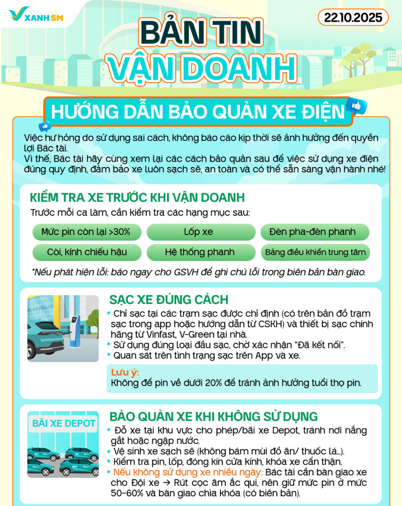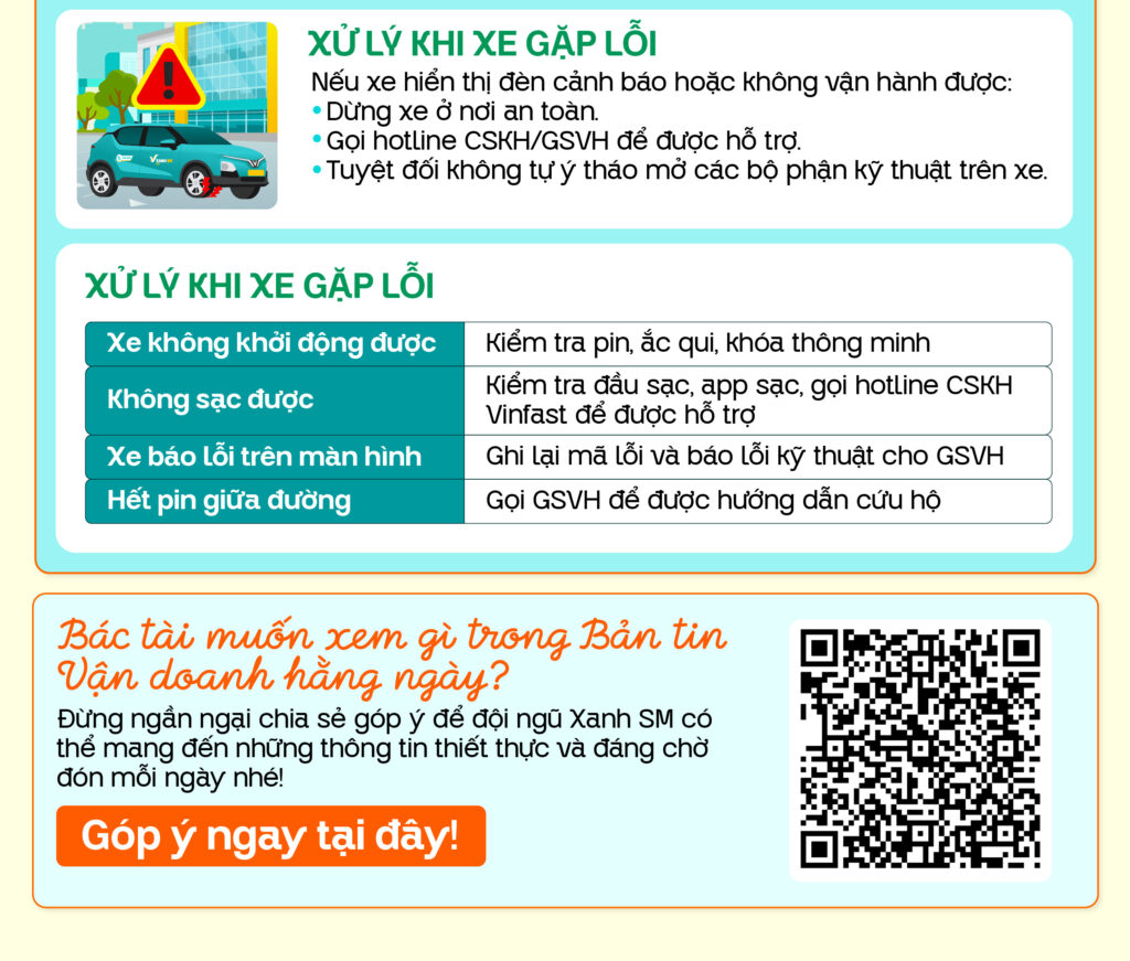 Và đừng quên, nếu Bác tài có góp ý hay chia sẻ thêm mong muốn, hãy gửi lại cho đội ngũ Xanh SM để Bản tin mỗi ngày thêm thiết thực và đáng mong chờ hơn!
