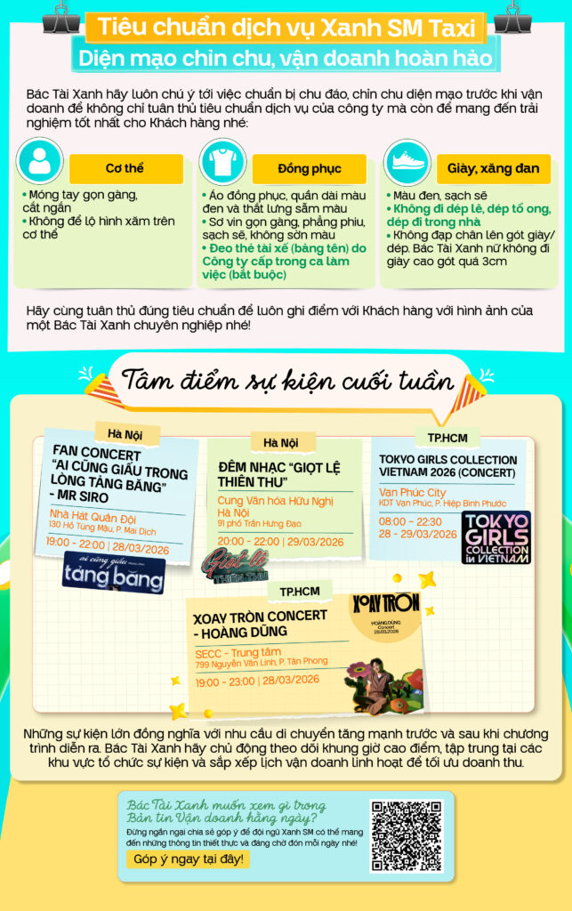 Và đừng quên, nếu Bác Tài Xanh có góp ý hay chia sẻ thêm mong muốn, hãy gửi lại cho đội ngũ Xanh SM để Bản tin mỗi ngày thêm thiết thực và đáng mong chờ hơn!