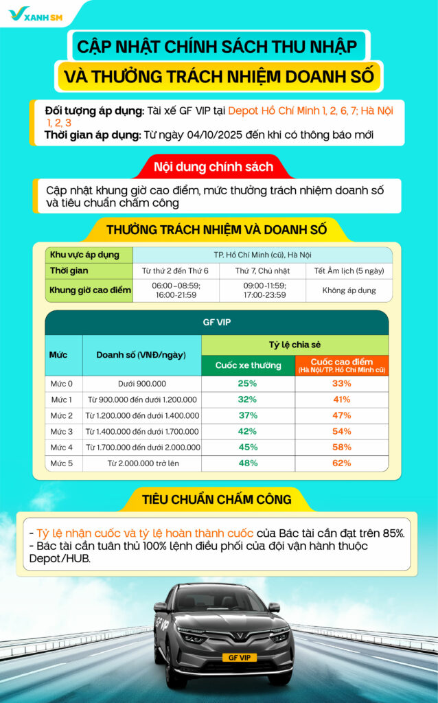 Chính sách thu nhập và thưởng trách nhiệm doanh số Tài xế GF VIP tại Hà Nội, TP.HCM