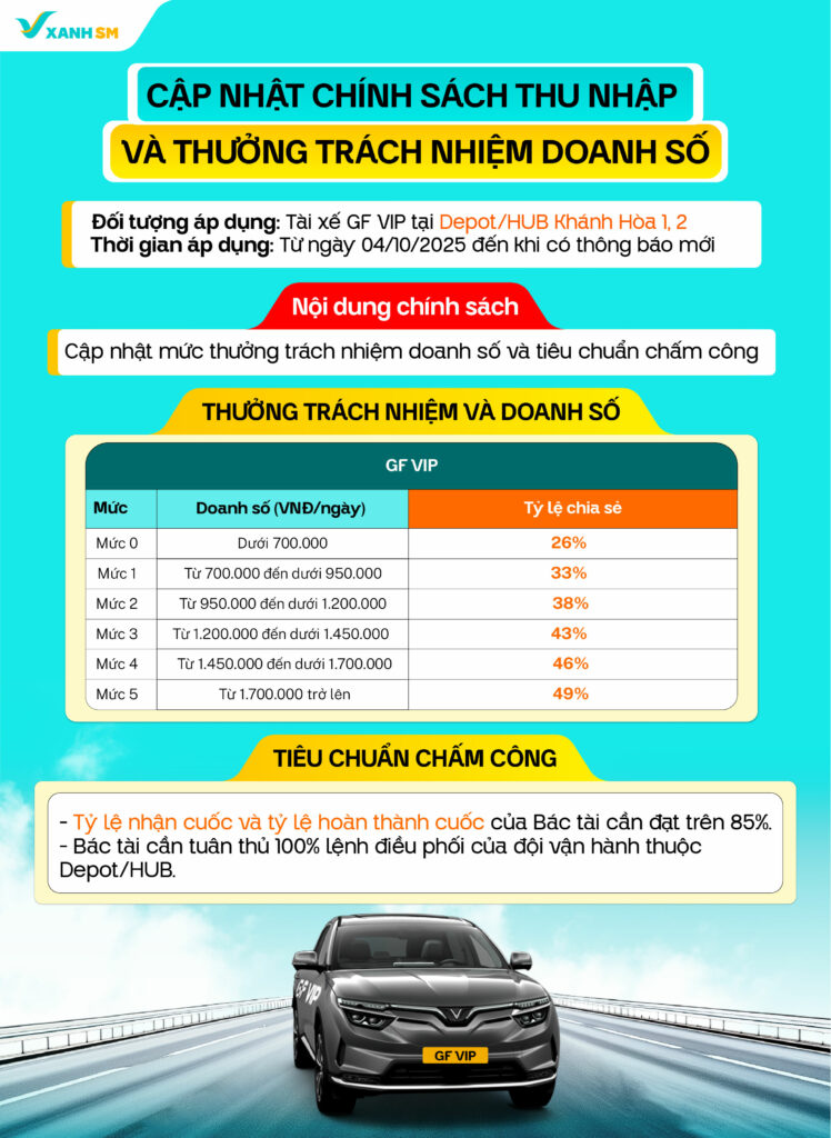 Chính sách thu nhập và thưởng trách nhiệm doanh số Tài xế GF VIP tại Khánh Hòa 1, 2