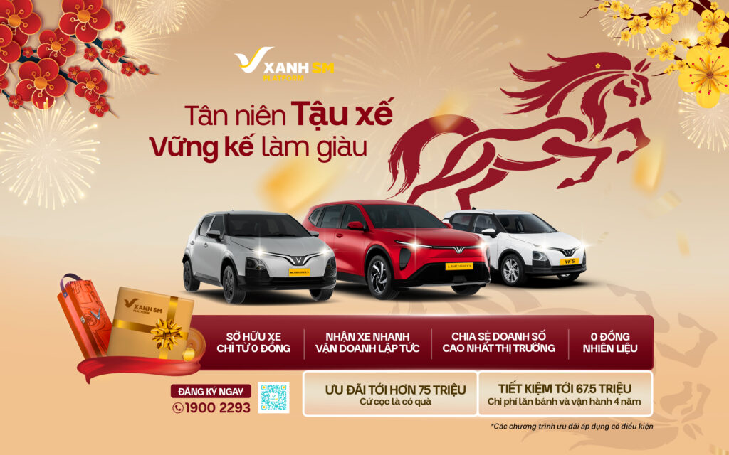 Hướng tới mục tiêu đồng hành cùng khách hàng chủ động phương tiện và tối ưu bài toán tài chính ngay từ đầu năm, GSM triển khai chương trình khuyến mại “Tân niên tậu xế – Vững kế làm giàu” dành cho các đơn đặt cọc mua xe trong tháng 01 và tháng 02/2026. Chương trình được thiết kế như một giải pháp hỗ trợ toàn diện, giúp khách hàng dễ dàng tiếp cận phương tiện phù hợp, giảm áp lực chi phí ban đầu và từng bước hiện thực hóa kế hoạch gia tăng thu nhập bền vững trong năm mới.