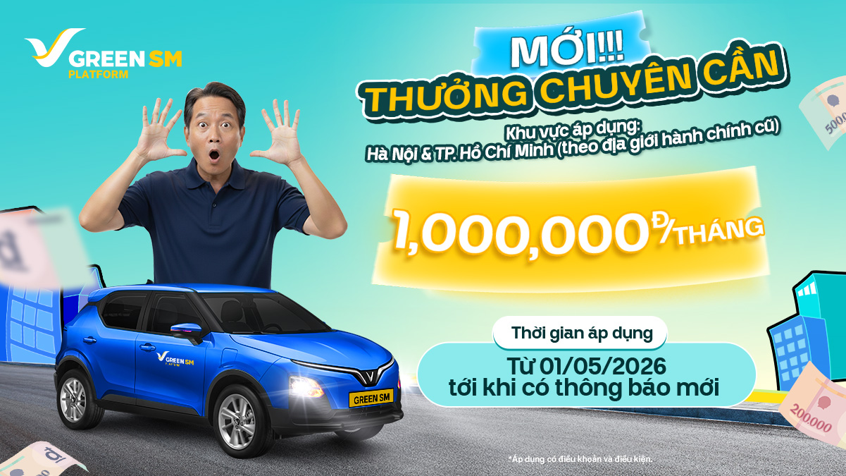 Chính sách thưởng hấp dẫn khi gia nhập Xanh SM trong tháng này