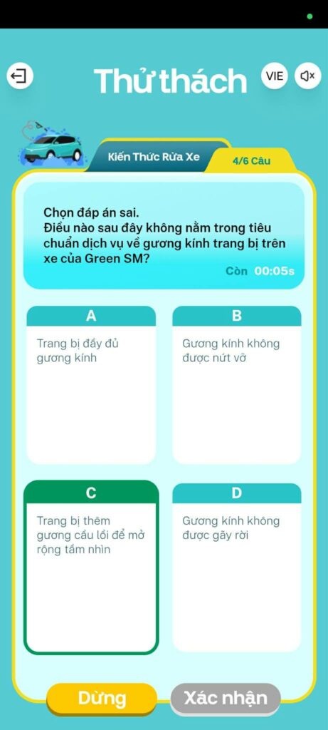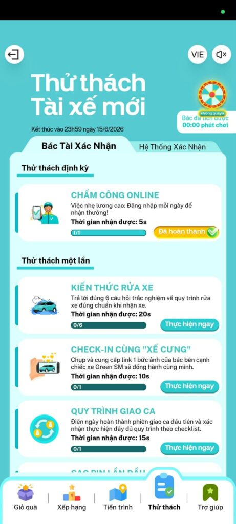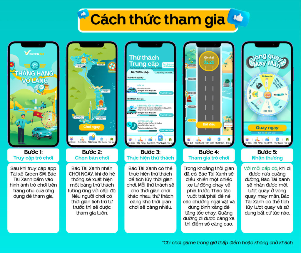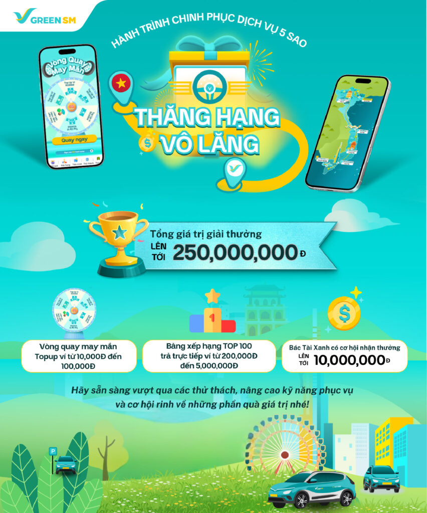 Trò chơi “Thăng hạng vô lăng – Hành trình chinh phục dịch vụ 5 sao” đã chính thức lộ diện trên chính ứng dụng Green SM Driver. Đây là cơ hội để các Bác Tài Xanh vừa giải trí sau những giờ vận doanh hiệu quả, vừa so trình cầm lái điêu luyện thông qua những câu hỏi tình huống để mang về những phần thưởng siêu hấp dẫn!