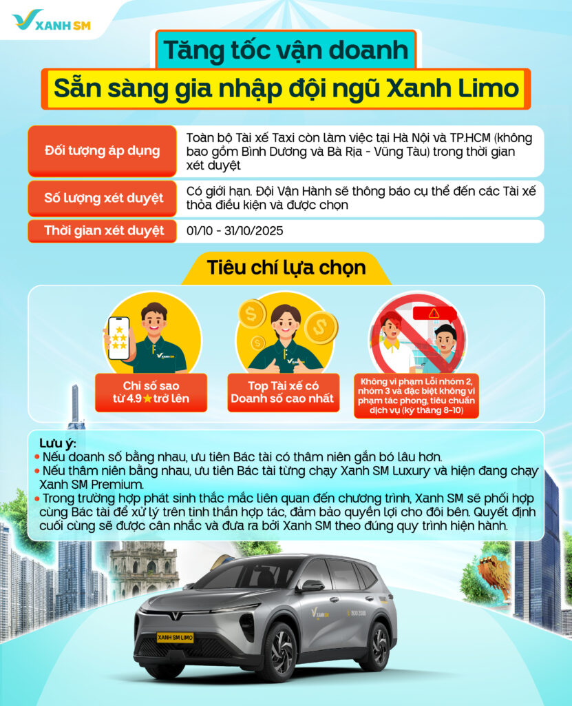 Chỉ còn hơn 10 ngày để thi đua xét duyệt trở thành Bác tài Xanh Limo thôi Bác tài ơi! Số lượng có hạn, vì vậy đây chính là thời điểm vàng để bứt phá doanh thu, khẳng định phong độ và ghi tên mình vào Đội ngũ Tài xế tiên phong của Xanh Limo!